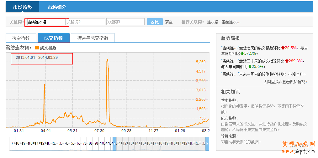我們要看2013年的成交指數(shù)的需求走勢(shì),便于我們預(yù)測(cè)今年2014年的“雪紡連衣裙”的趨勢(shì)