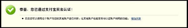 恭喜,您已通過支付寶實名認證!