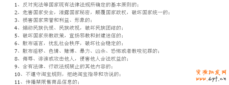這1之11條相信大家都可以很清楚,這些內容在整個互聯網和現實中都是禁止的,發現立馬刪除的,相信大家也都是良民,這些問題不會犯得,我們都是愛國的中國人,呵呵!!