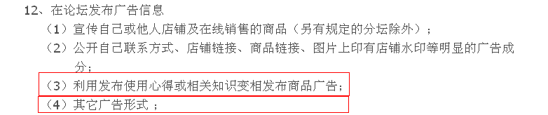 這第12條規則,前面的2條都好理解,明顯的廣告是不可能發過的,后面的2條大家需注意下,不要玩腦筋急轉彎噢,或許管理員腦子轉不過來一下撞樹上,就把你的帖子當廣告給刪了!所以建議大家不要玩數字游戲和文字游戲,玩過了受損的還是自己!!