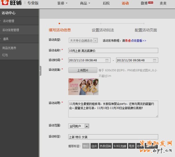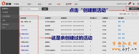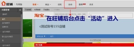 1、親需要登錄你的旺鋪后臺,在導航位置點擊“活動”,即可進入。