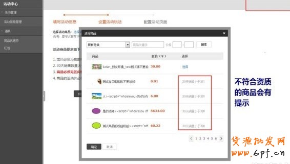 不符合資質的商品,也會有提示項,提示商品不符合哪些條件。