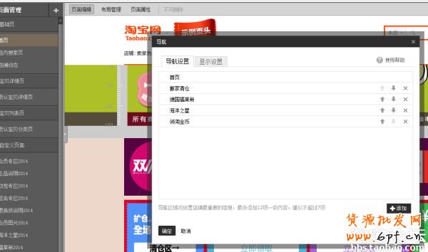 3.然后就回到了導航設置,可以調節順序哦。然后點擊確定,發布之后就能在店鋪首頁看到了。