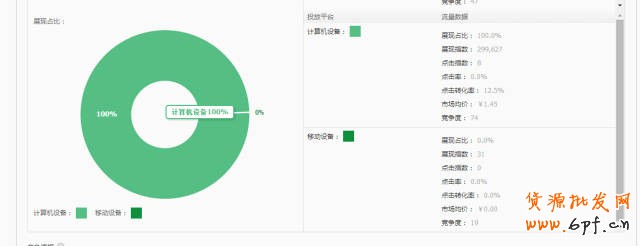 2、根據站內外流量占比與PC移動端流量占比判斷飆升詞流量來源,調整不同平臺的出價折扣;