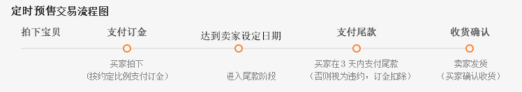 1)拍下付訂金-- 2)到達(dá)設(shè)定時(shí)間付尾款-- 3)發(fā)貨收貨
