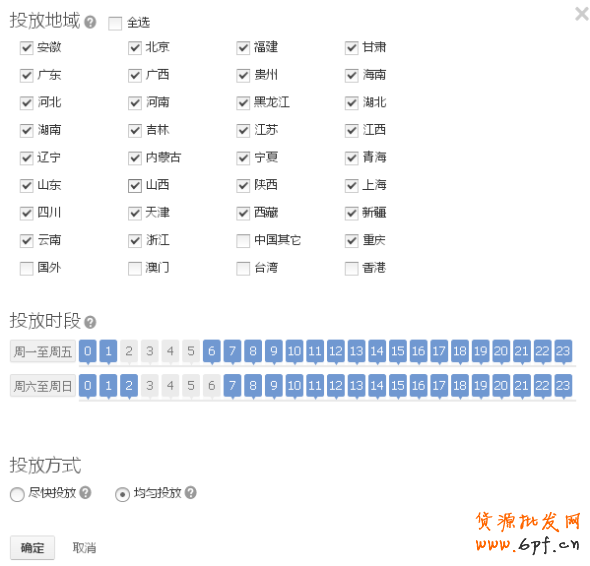 偏遠地區的人們可能買不起電腦,但是手機基本會用,所以偏遠地區的人們網購主要還是用手機。投放地點選擇上除了港澳臺國外全選上。預算不多,可以根據數據魔方精選買家集中的省份進行投放。