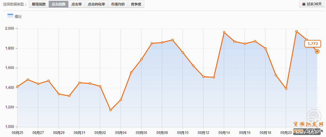 以上是店鋪的部分產品,店鋪主營就是五金/工具 > 緊固件,螺絲螺母類的配件,可以說該類目屬于小類目,行業競爭不比服裝或食品類行業,競爭相對較小,從流量解析我們可以得知,大詞的點擊指數也只有一千多和幾百,競爭小的同時,該行業的行業搜索指數也是比較少的,那么如果在這比較狹窄的市場競爭流量,就是一個店鋪經營成敗的先決條件。