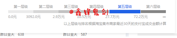 可以看新店都處于第一層級,幾千塊就到第二層級,幾萬塊就到第三層級,幾十萬才到第五層級。所以前邊的層級門檻低,越到后邊門檻越高。