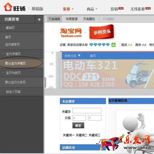 點(diǎn)擊:頁面編輯→寶貝詳情頁→默認(rèn)寶貝詳情頁;編輯寶貝頁的店鋪招牌,并更換成立想要的招牌;